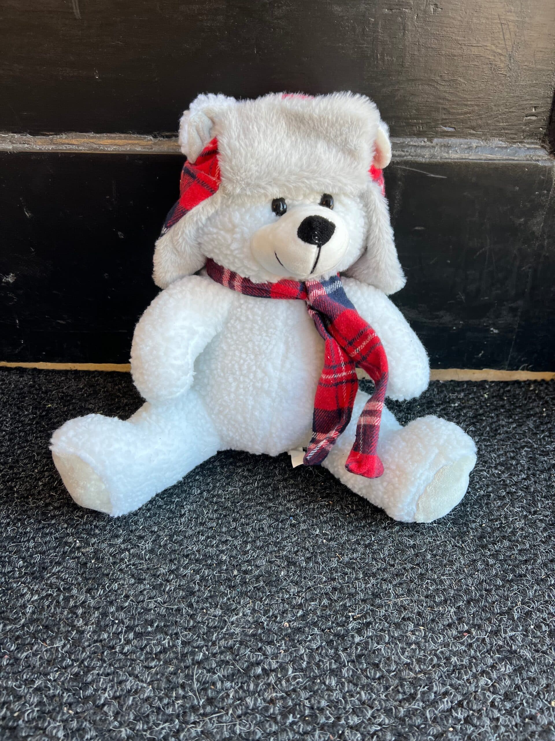 White Teddy Bear with Removable Red Plaid Hat & Scarf Plush Stuffed Animal, 12″