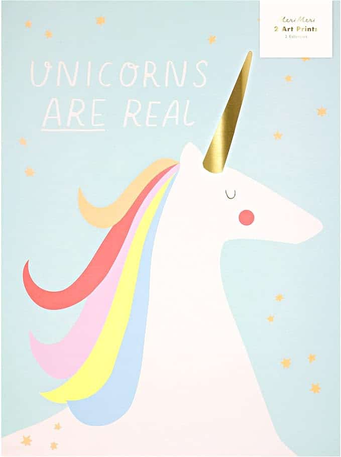 - Unicorn print includes the phrase “Unicorns are Real”
